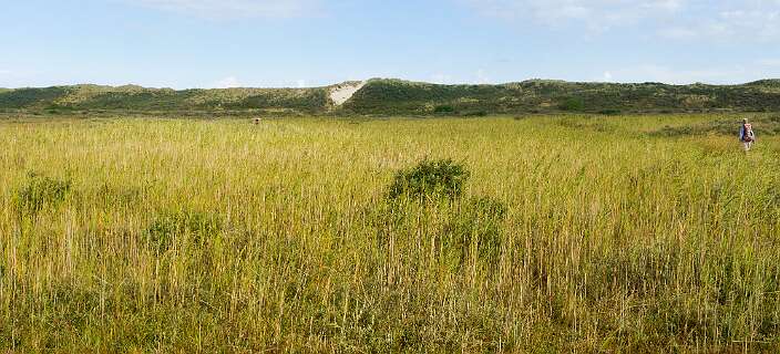In 2021 liepen we ook vanuit de camping eerst door het Formerumerbos en daarna langs het natte deel van Koegelwieck naar paviljoen Kaap Hoorn en via het strand terug, totaal 11km.