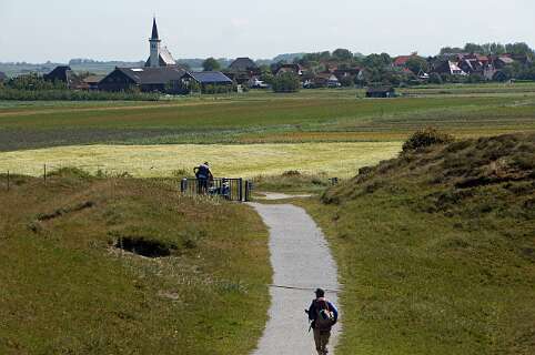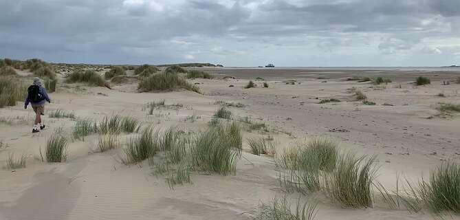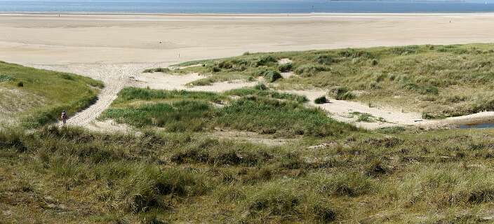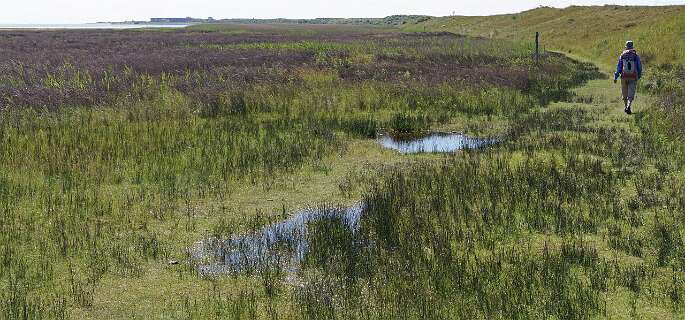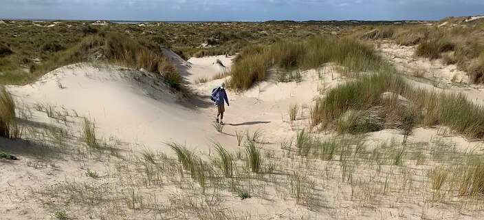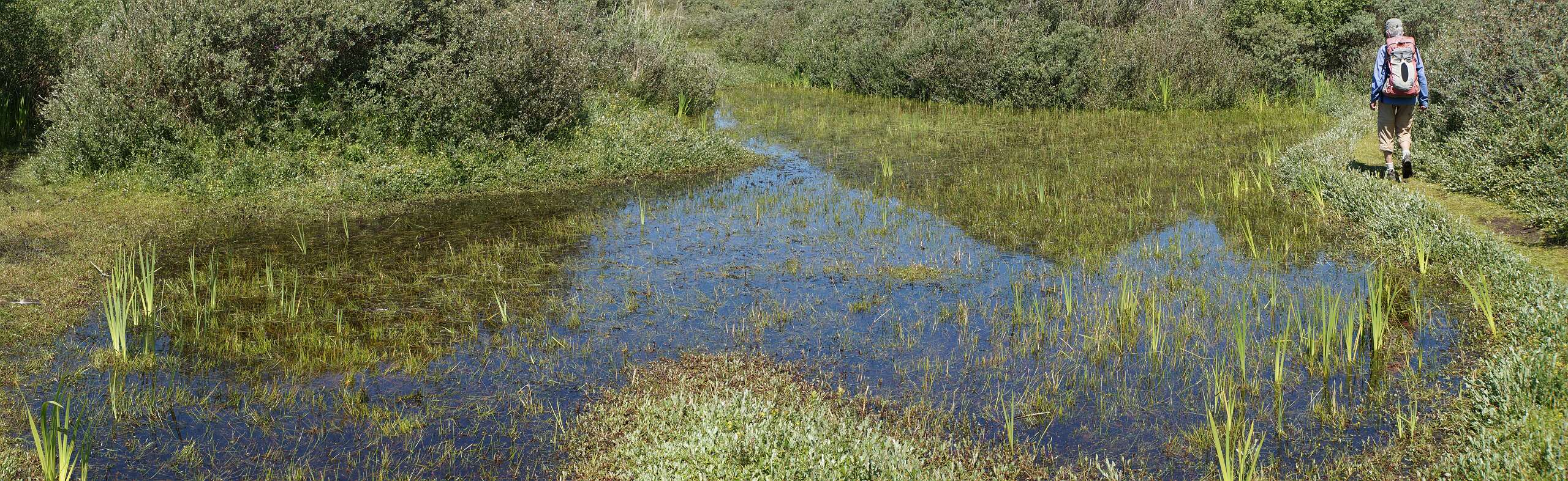 In het voorjaar is het pad langs de Moksloot afgesloten, daarom liepen we vanaf paal 10 door de camping onder Den Hoorn langs de Horsmeertjes en terug langs het strand (rode route). Later liepen we vanaf de Kazerne over de Hors (blauwe route). In 2019 liepen we weer vanaf paal 10 (gele route).
