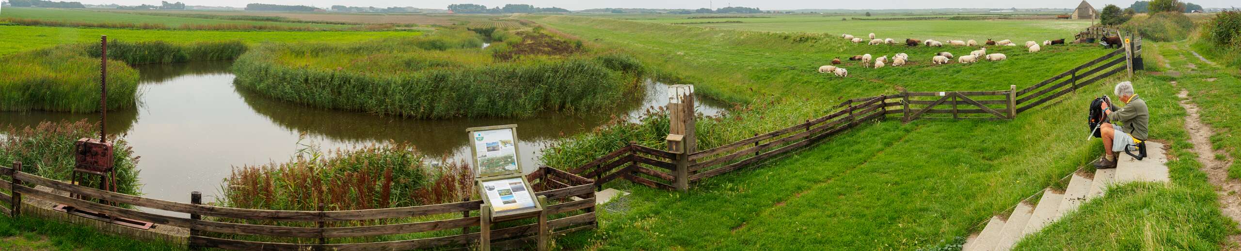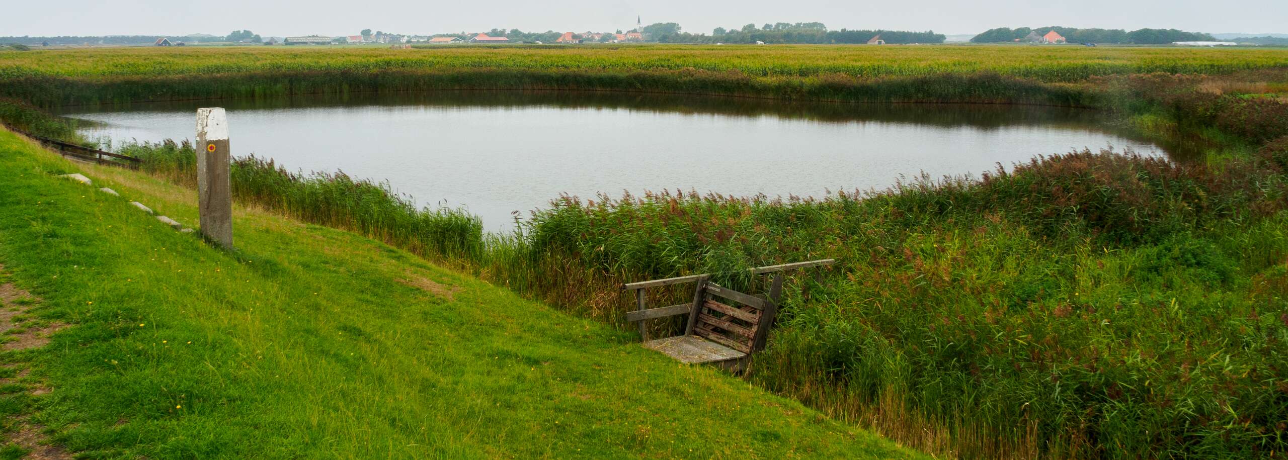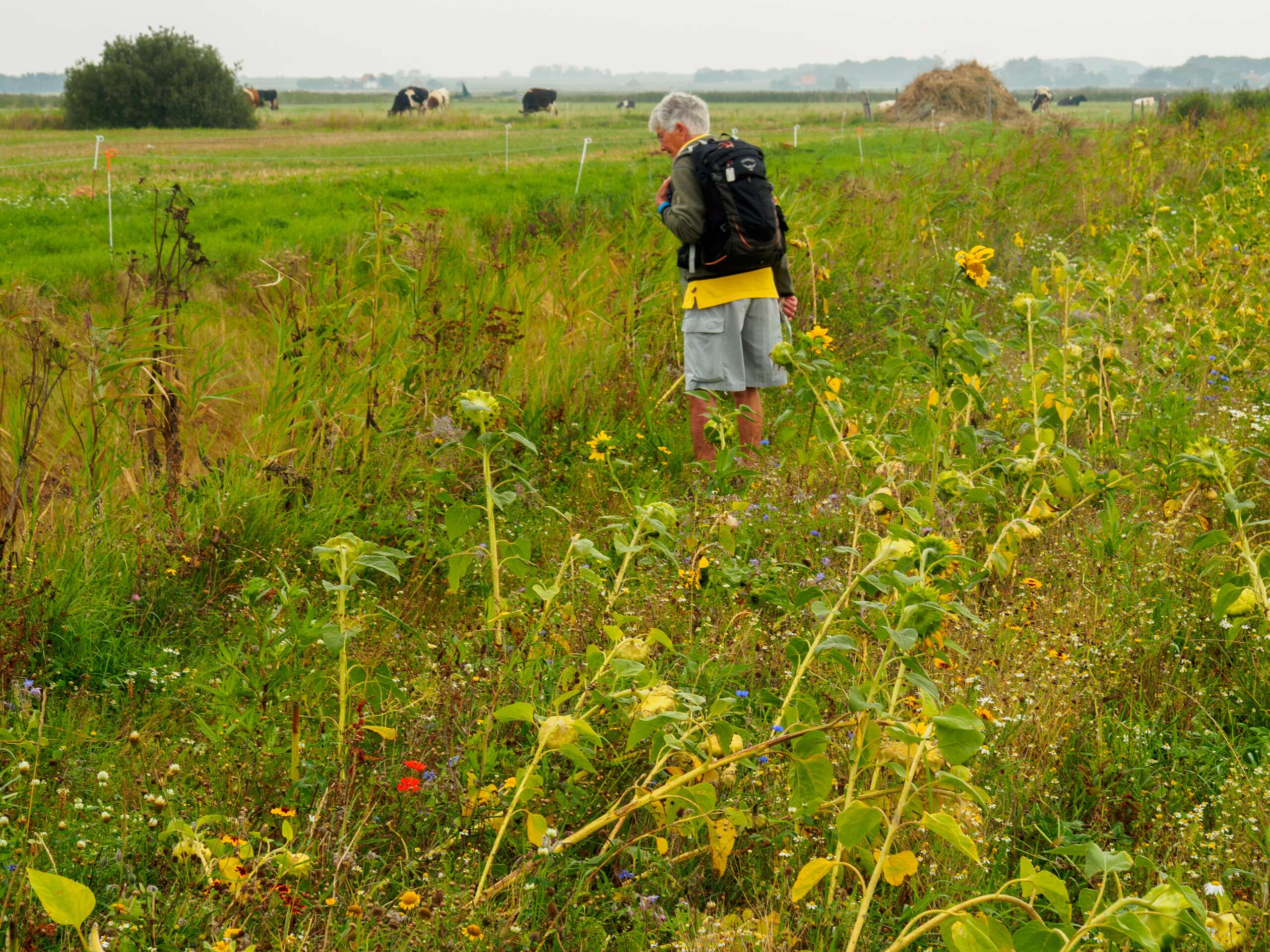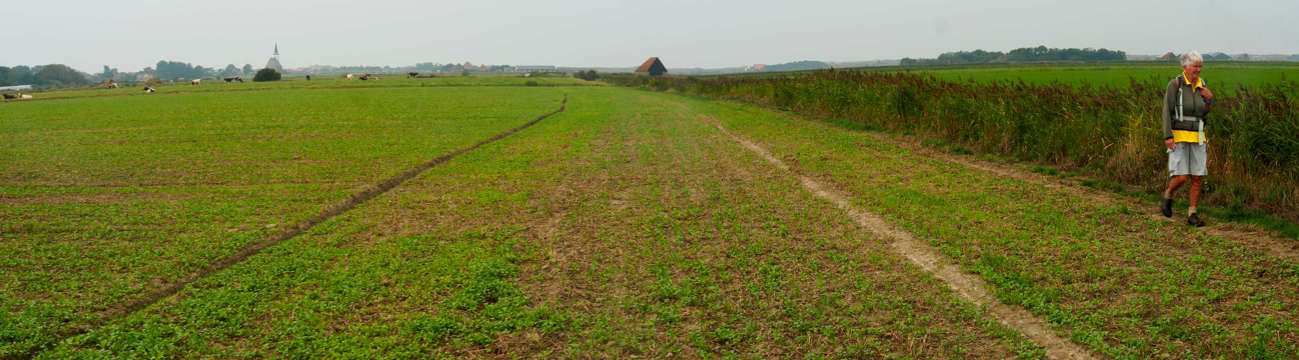 De Polderpad route bij Hoorn wordt aangegeven met PP markeringen.