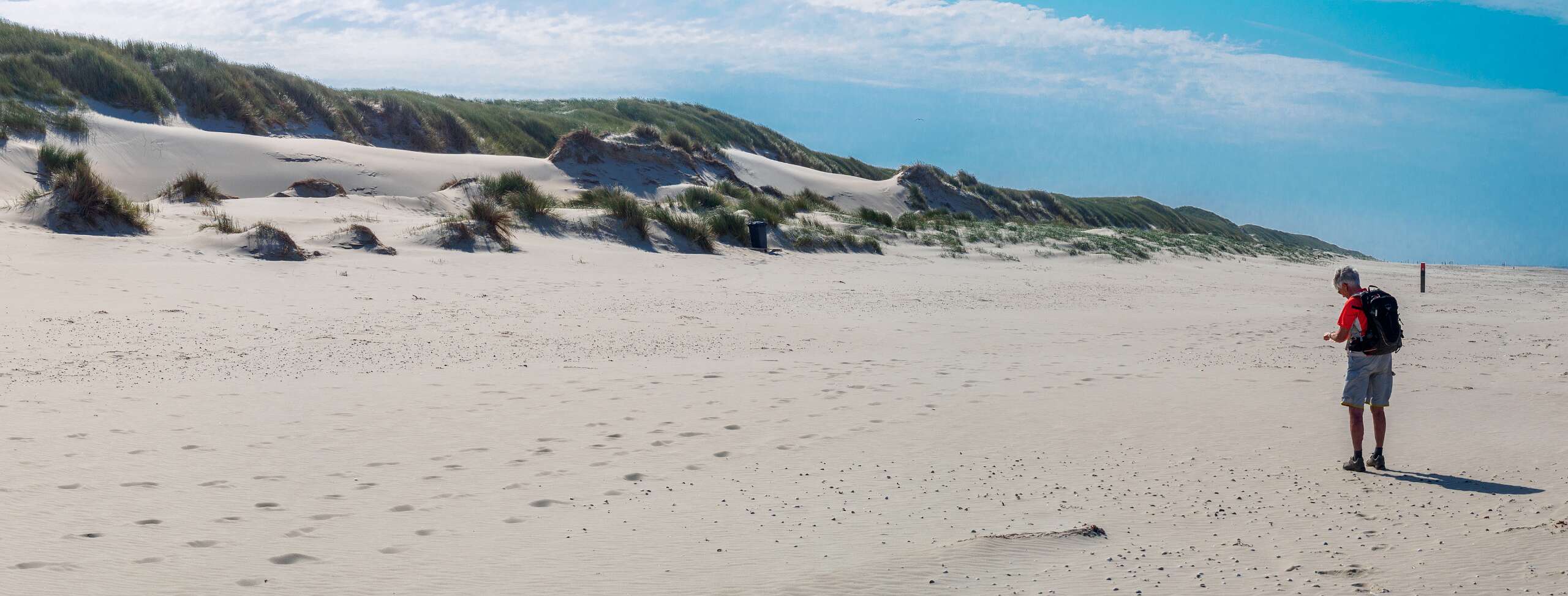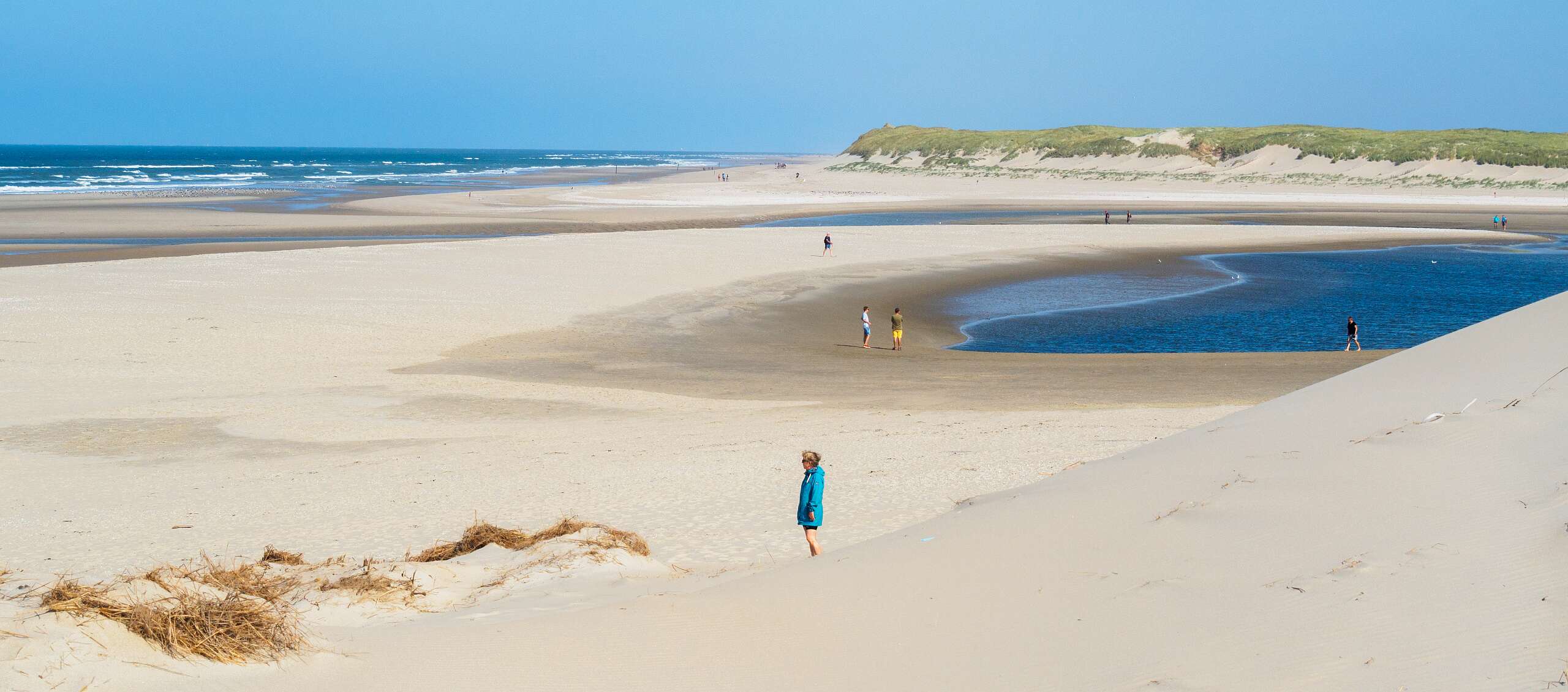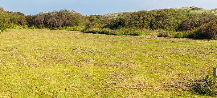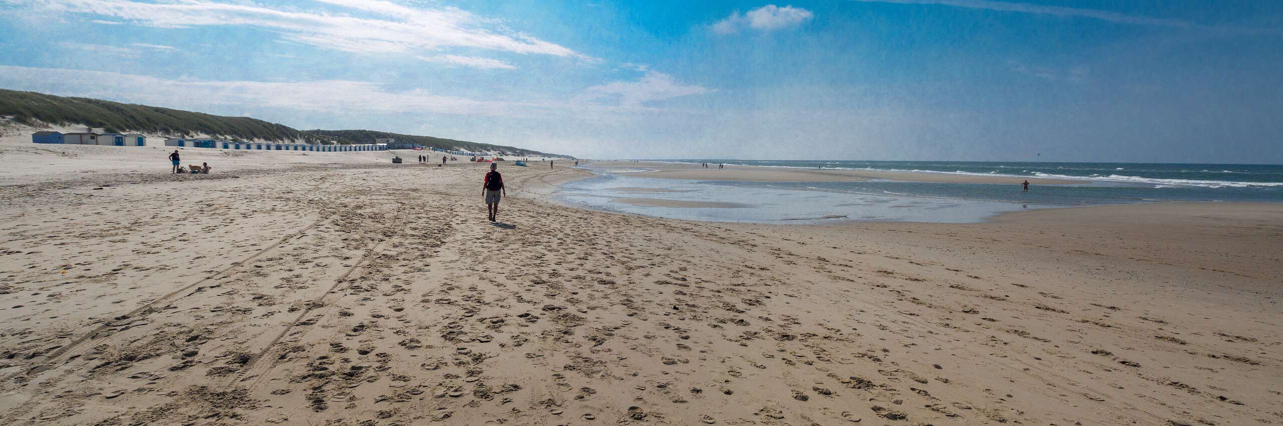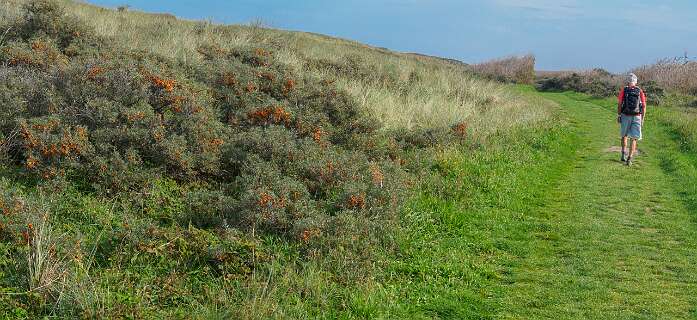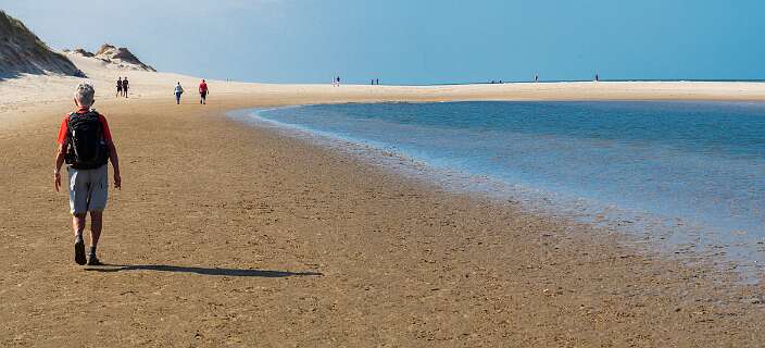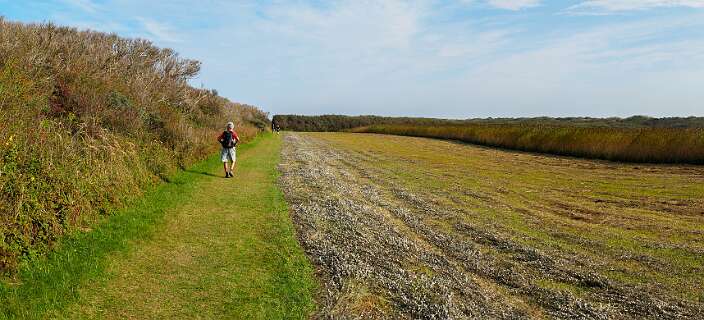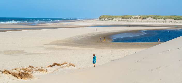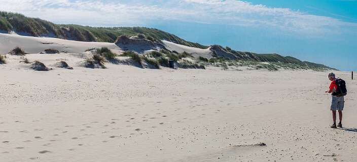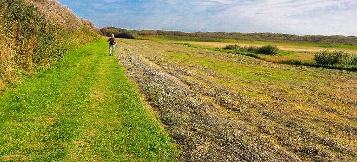 Deze wandeling van 12,5 km start op de parkeerplaats van paviljoen Paal 12, net boven De Koog.