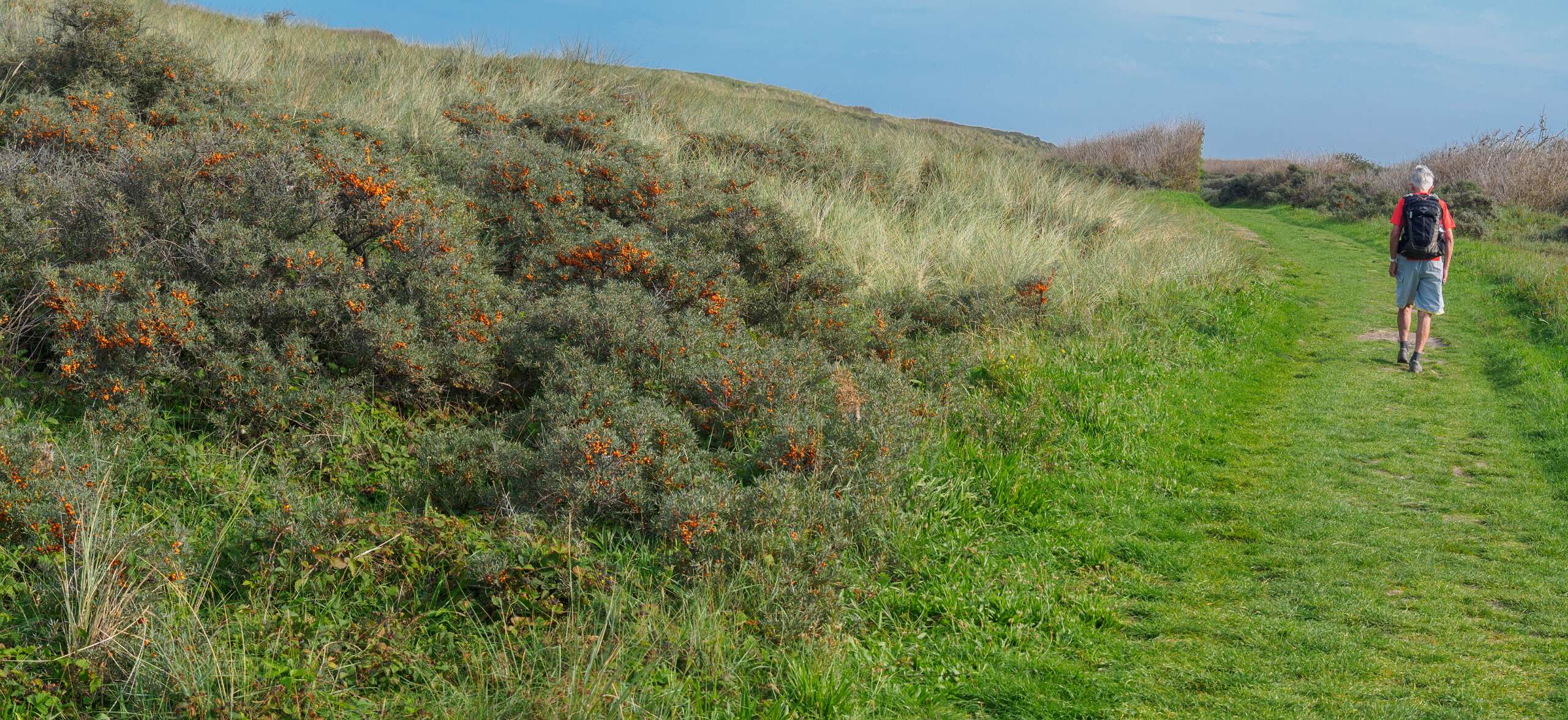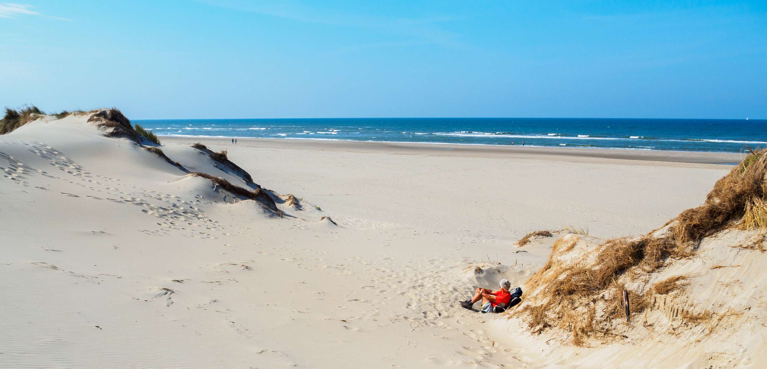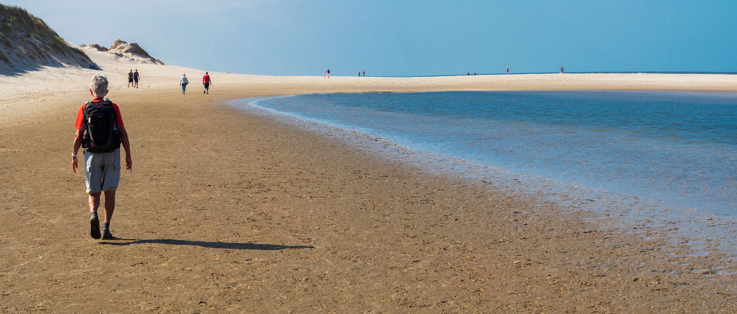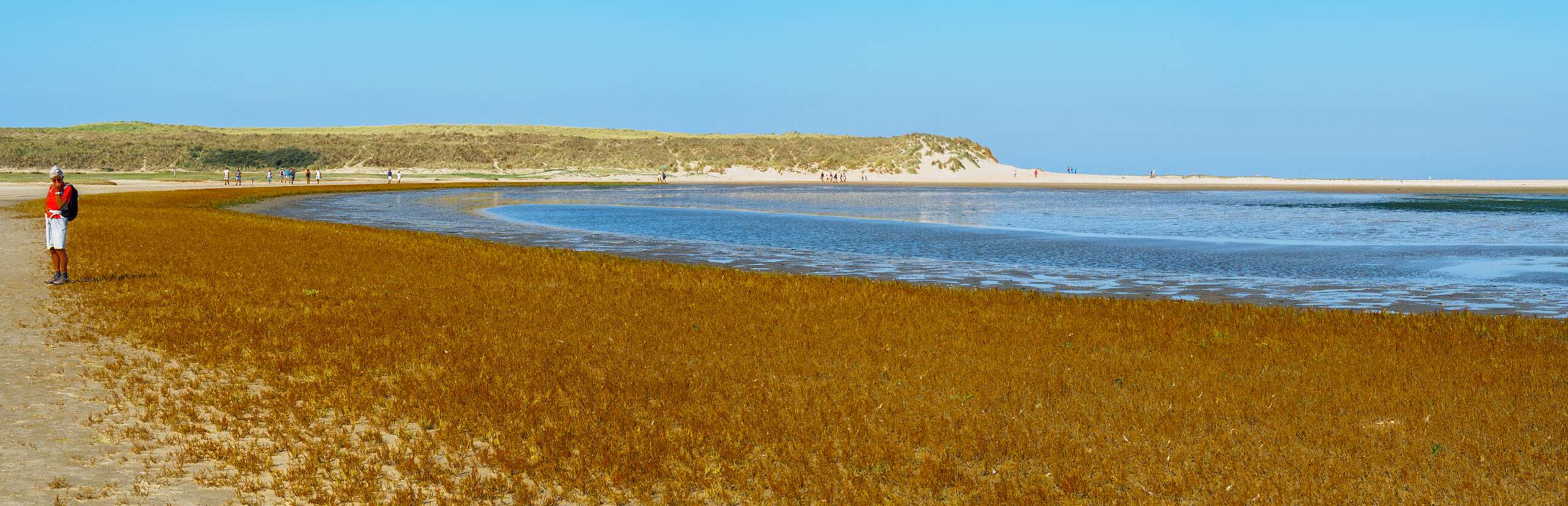 Deze wandeling van 12,5 km start op de parkeerplaats van paviljoen Paal 12, net boven De Koog.