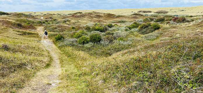 Dit is een 10,5km lange rondwandeling vanuit camping Woutershok met een bos traject, een duinen traject en een strand traject bij paal 17.