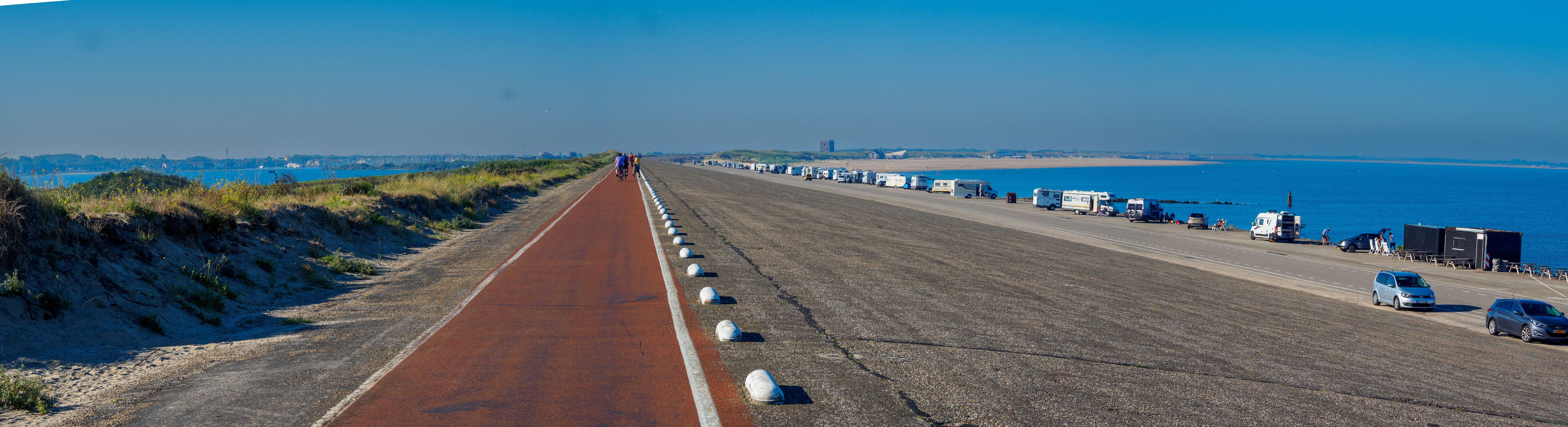 We fietsten vanaf de camping Brouwersdam over de Brouwersdam naar Renesse op Schouwen-Duiveland, totaal 25km.