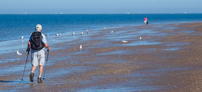 We maakten een korte strandwandeling van 5,6km vanaf camping Brouwershaven.