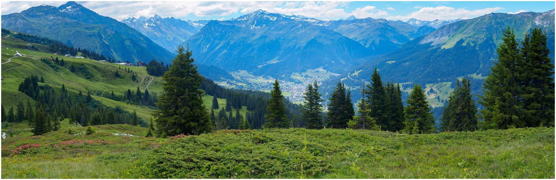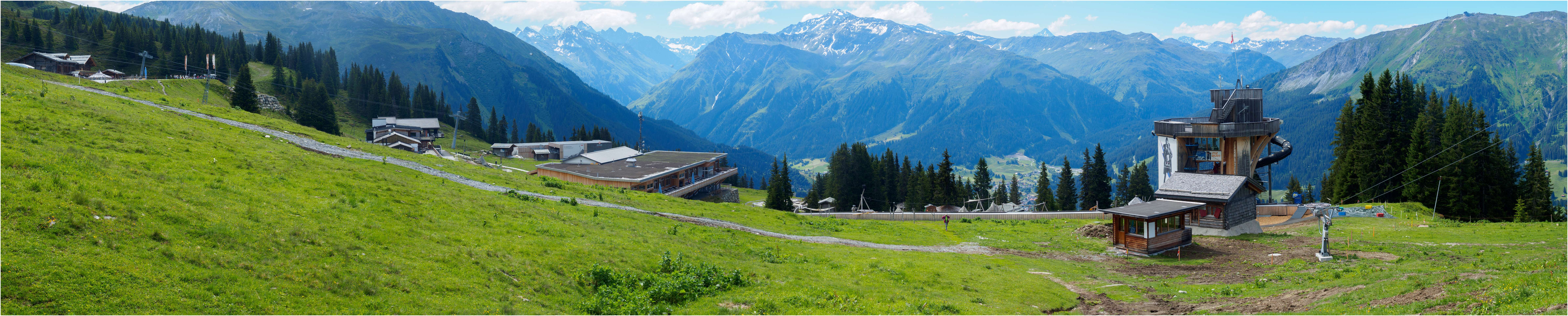 We namen de trein naar Klosters-Dorf en gingen daar met de Madrisabahn omhoog. Boven liepen we de bewegwijzerde grote rondwandeling.