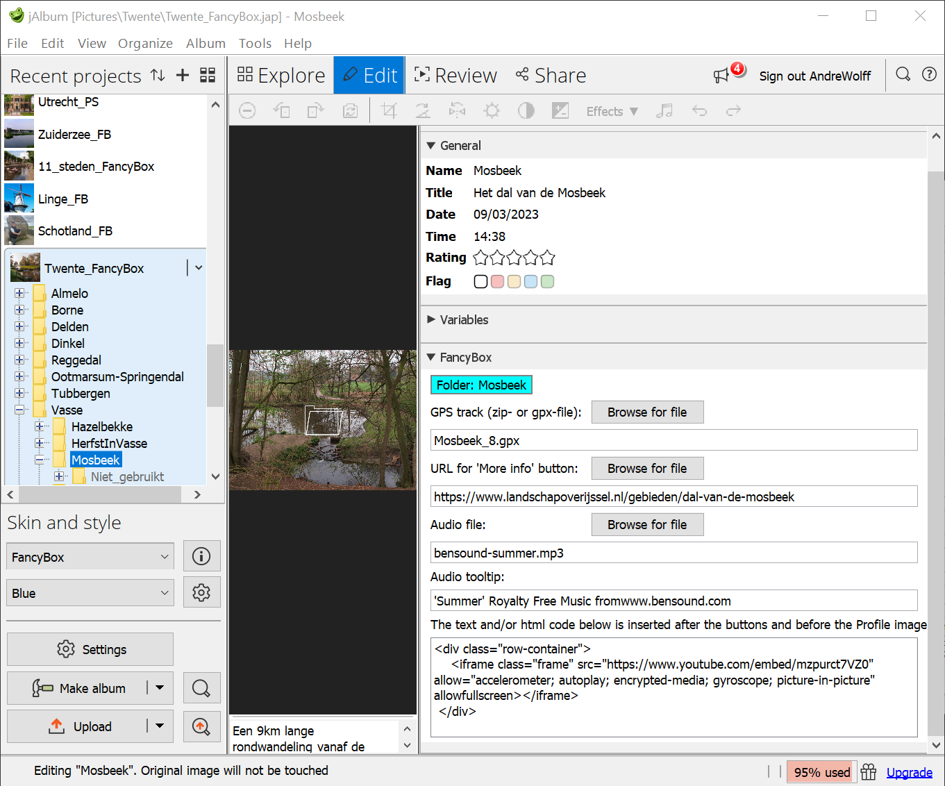 However if your album contains a number of manually added files like GPS-tracks, Map files or height profiles, you better follow the procedure described here.