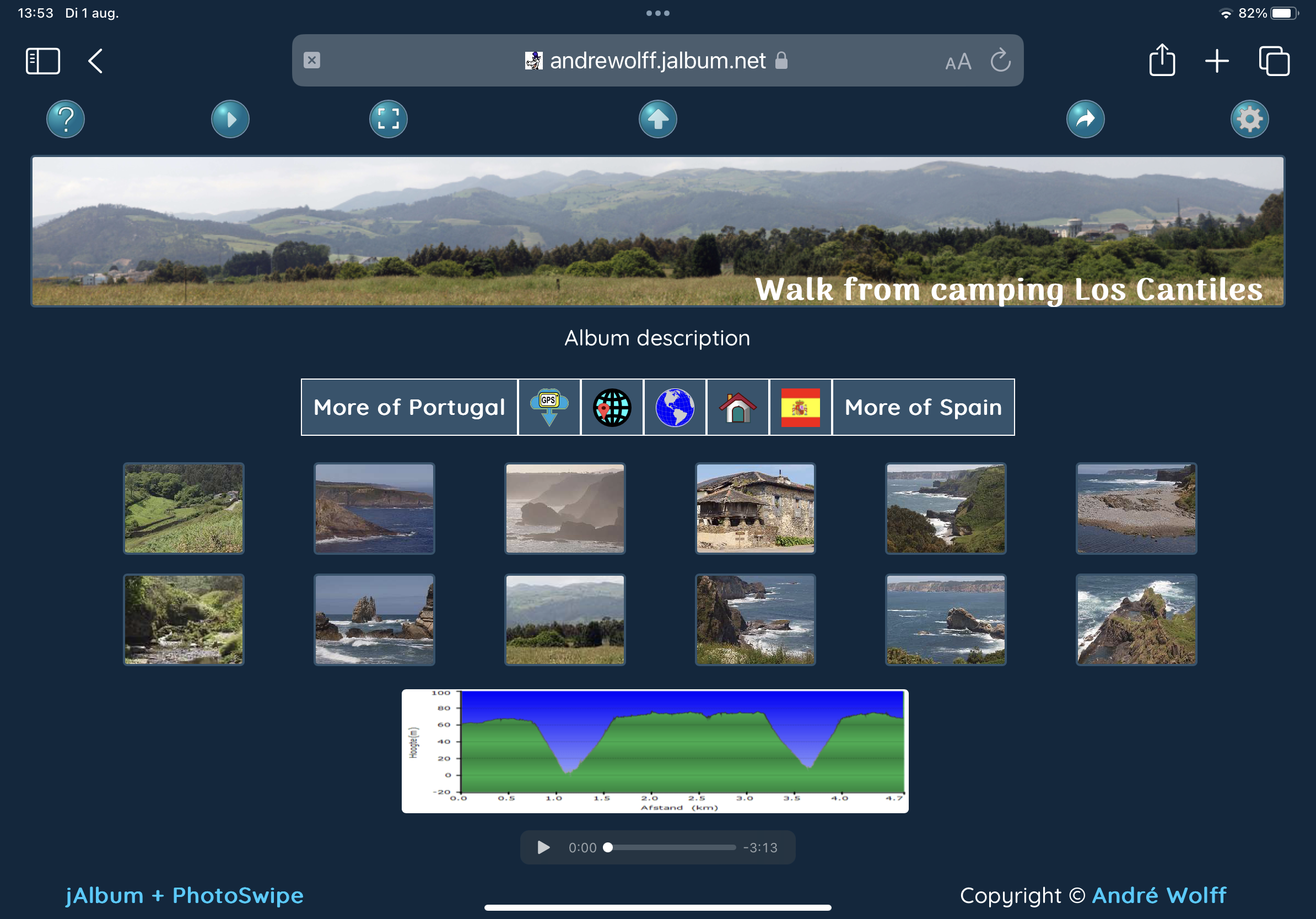 Next I opened the main Algarve album which produces 2560x1440 images with file Algarve.jap in the images directory, changed the slide image bounds to 812x375 (iPhoneXR screen size) and I changed the output directory to the just created folder Algarve_S. That is mostly sufficient, but I changed a number of more things: I removed the Google Translate link and changed some back links to my Algarve site to use spatial page I made there for small mobile devices..